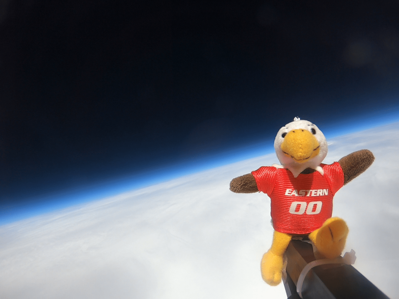 Swoop takes a ride on a high-altitude balloon courtesy of the EWU Aerospace Club.