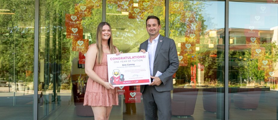 Erin Conroy, a junior studying pre-nursing, is the winner of the EagsVaxUp drawing for a year’s worth of tuition.